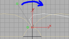 lenkt den Spline aus seiner Bahn. Er müßte dem blauen Pfeil