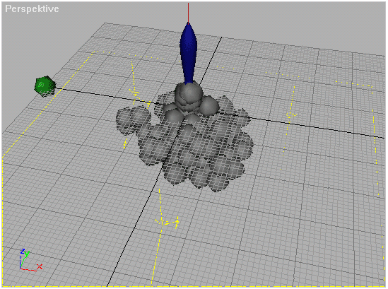 der Rakete. Aufgrund der Größe der Rakete ist der Emitter meiner Partikelwolke