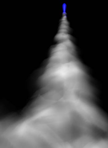 gesagt den Rauch der Rakete, der beim Abheben entsteht.